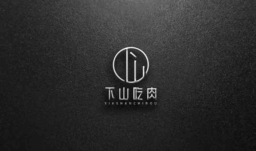“下*吃肉”這四個(gè)字采用了現(xiàn)代感強(qiáng)的字體設(shè)計(jì),筆畫干凈利落,與品牌的年輕化、潮流化定位相呼應(yīng)。英文“XIASHANCHIROU”以小寫簡(jiǎn)約呈現(xiàn),強(qiáng)化國(guó)際化視覺識(shí)別。